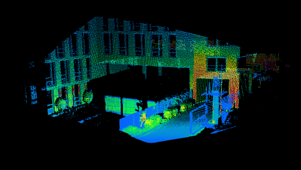 3D LiDAR takes a fundamentally different approach from conventional video surveillance, avoiding many of the data protection challenges associated with cameras. The technology relies on measuring distances based on the time of flight of light. A LiDAR sensor emits light pulses, receives the reflected light, and calculates the exact distance to every point in its surroundings. The result is a detailed three-dimensional point cloud.