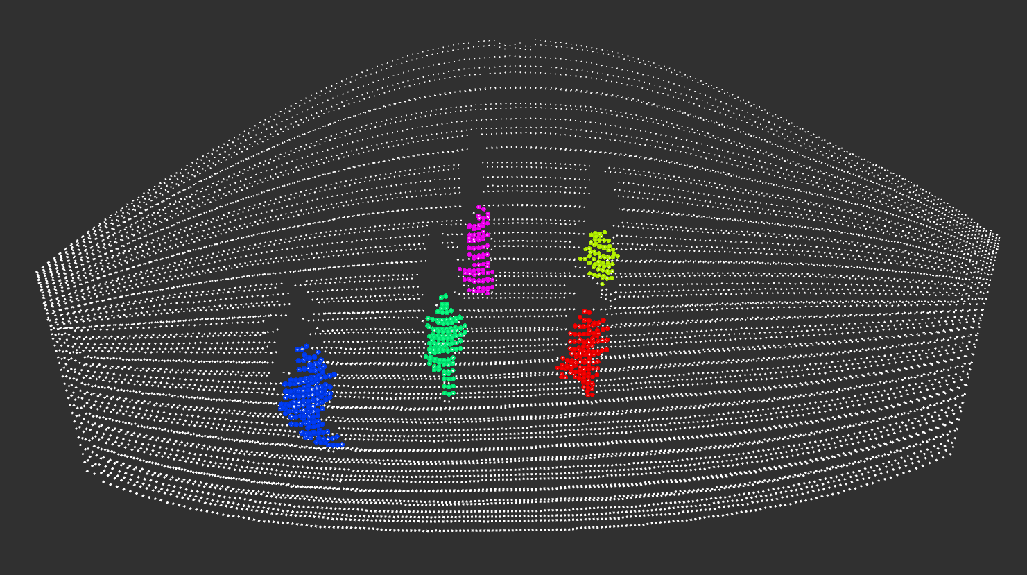 How exactly are these data obtained from the complex LiDAR point cloud data through processing? To understand this, we will look at a simplified algorithm for data evaluation. First, the foreground needs to be differentiated from the background. In order to do that, the scene is analyzed and the background is subtracted to identify point clusters. For this purpose, the static background is recorded in a point cloud before visitors arrive at the site. By recording the “status quo,” the software can determine which point clusters can be ignored because they are static and belong to the background. As soon as people enter the site, every image captured is matched with the captured background image to detect these same objects.