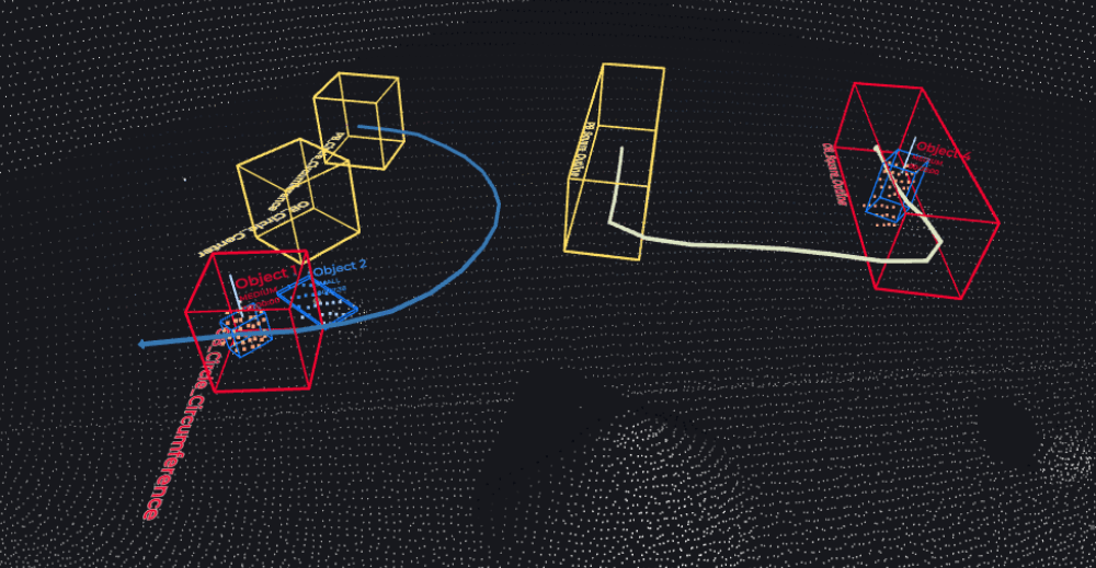 LiDAR, and its complementary software, uses bounding boxes around each point cloud to identify and separate different objects in the field of view. These boxes are then given tracking IDs, and a comparison with the database of objects is used to quickly identify the type of object (car, bike, pedestrian). The direction and speed of the moving objects can also be easily determined using the distance vectors; therefore, the number of objects entering and leaving the parking lot and the shopping mall itself can be determined.