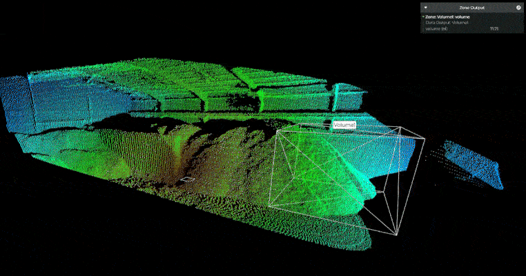 Zunächst wird die Punktwolke auf den definierten Messbereich zugeschnitten – also nur die Punkte berücksichtigt, die sich innerhalb der gewünschten virtuellen Zone befinden.